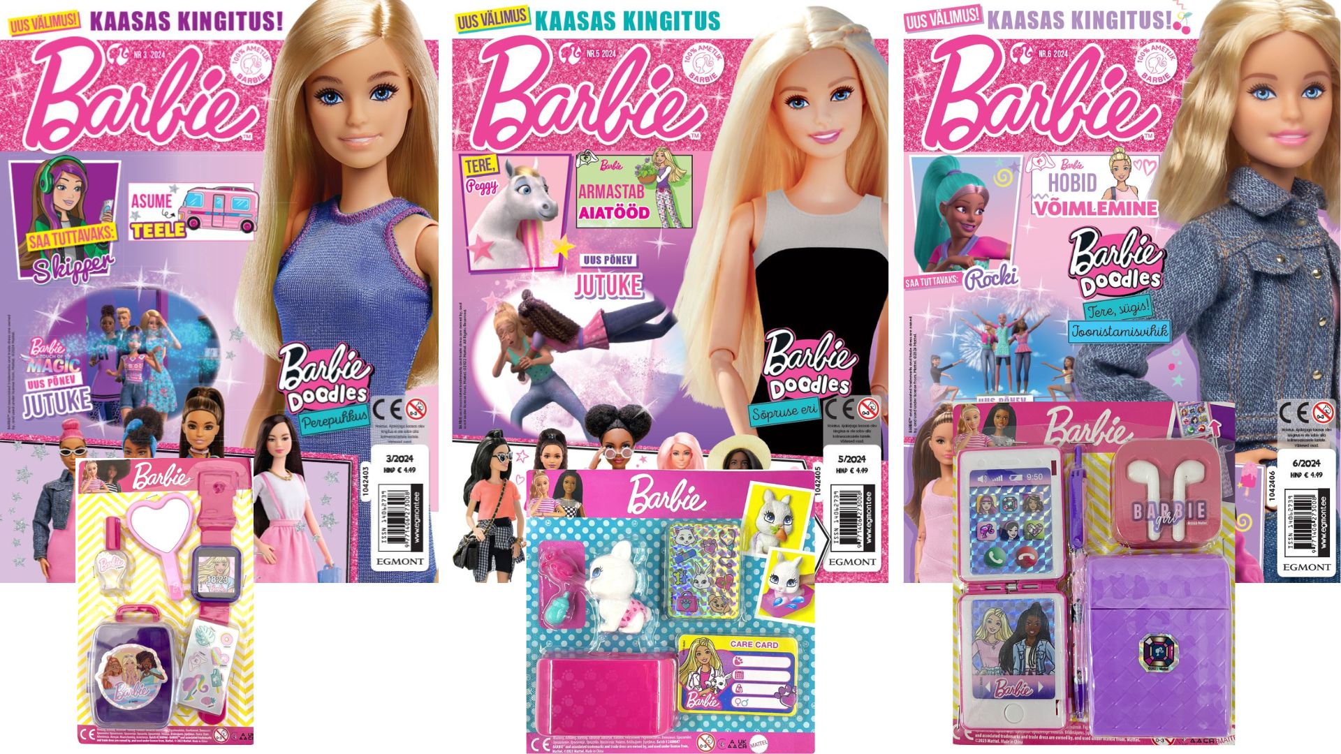 Komplektis 3 ajakirja – Barbie 2025/3, 2024/5, Barbie 2024/6 + kingitused!