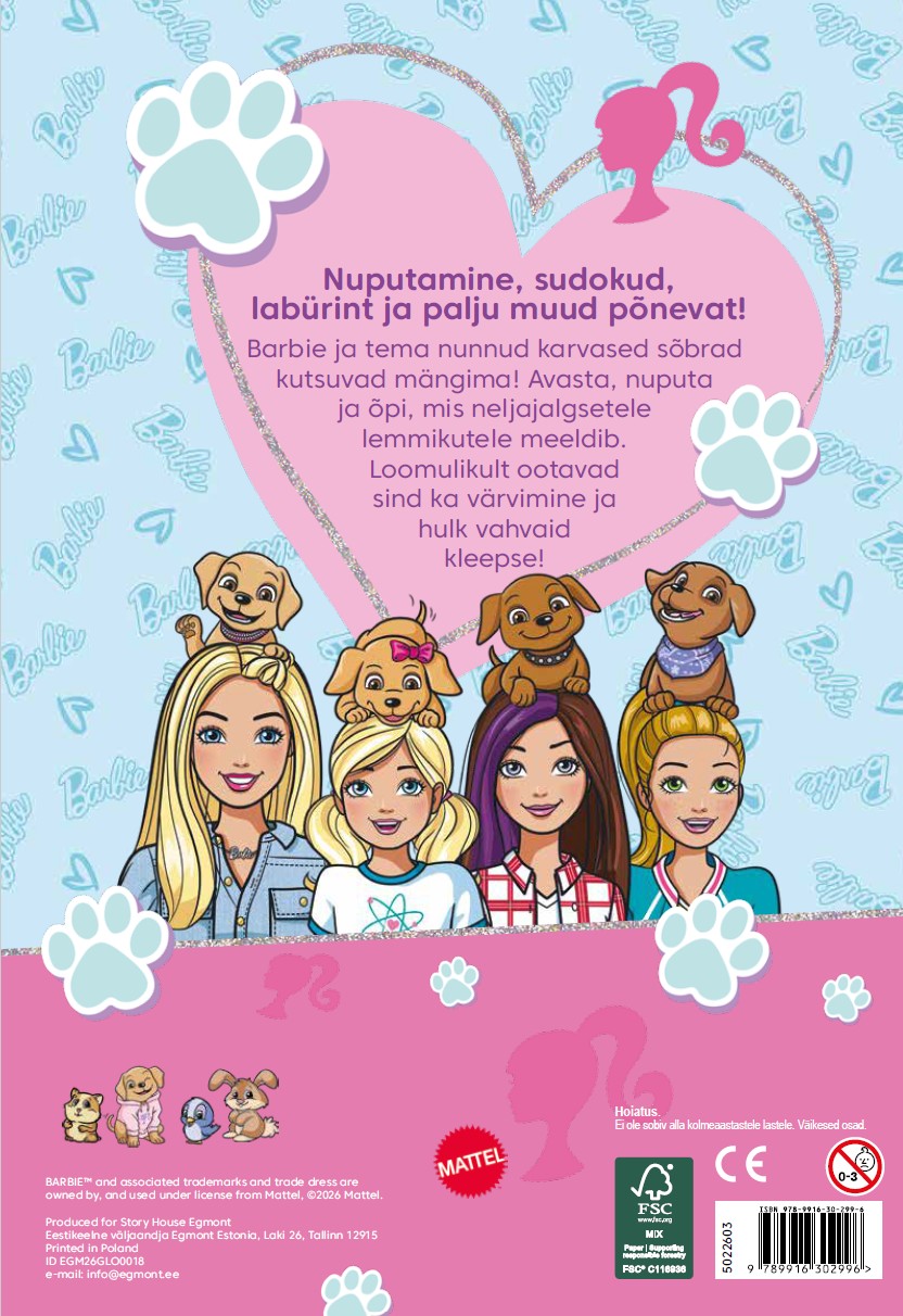 Nuputamine, sudokud, labürint ja palju muud põnevat! Barbie ja tema nunnud karvased sõbrad kutsuvad mängima! Avasta, nuputa ja õpi, mis neljajalgsetele lemmikutele meeldib. Loomulikult ootavad sind ka värvimine ja hulk vahvaid kleepse.