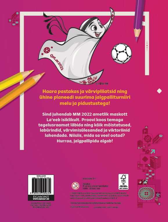 Haara pastakas ja värvipliiatsid ning ühine planeedi suurima jalgpalliturniiri melu ja pidustustega! Sind juhendab MM 2022 ametlik maskott La’eeb isiklikult. Proovi koos temaga tegelusraamat läbida ning kõik mõistatused, labürindid, värvimisülesanded ja viktoriinid lahendada. Niisiis, mida sa veel ootad? Hurraa, jalgpallipidu algab!