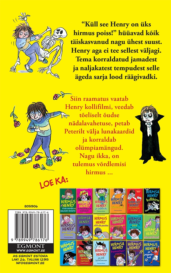 “Küll see Henry on üks hirmus poiss!” hüüavad kõik täiskasvanud nagu ühest suust. Henry aga ei tee sellest väljagi. Tema korraldatud jamadest ja naljakatest tempudest selle ägeda sarja lood räägivadki. Siin raamatus vaatab Henry kollifilmi, veedab tõeliselt õudse nädalavahetuse, petab Peterilt välja lunakaardid ja korraldab olümpiamängud. Nagu ikka, on tulemus võrdlemisi hirmus…