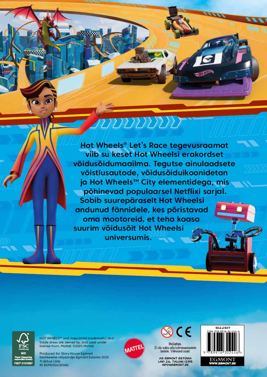 Hot Wheels Let’s Race tegevusraamat viib su keset võidusõidumaailma. Tegutse ainulaadsete võistlusautode, võidusõiduikoonidega ja Hot Wheels City elementidega, mis põhinevad populaarsel Netflixi sarjal. Sobib suurepäraselt Hot Wheelsi andunud fännidele, kes põristavad oma mootoreid, et teha kaasa suurim võidusõit Hot Wheelsi universumis.