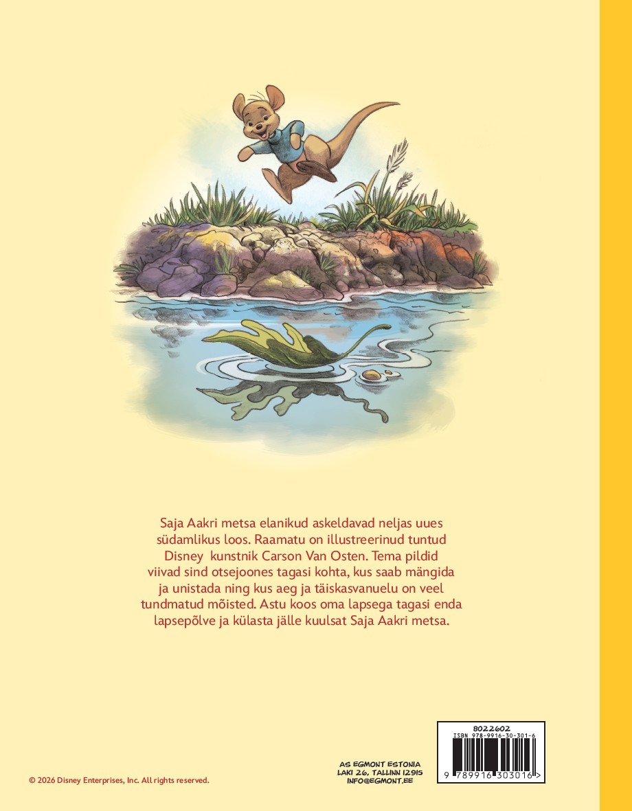 Saja Aakri metsa elanikud askeldavad neljas uues südamlikus loos. Raamatu on illustreerinud tuntud Disney kunstnik Carson Van Osten. Tema pildid viivad sind otsejoones tagasi kohta, kus saab mängida ja unistada ning kus aeg ja täiskasvanuelu on veel tundmatud mõisted. Astu koos oma lapsega tagasi enda lapsepõlve ja külasta jälle kuulsat Saja Aakri metsa.