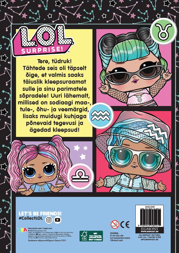 Tere, tüdruk! Tähtede seis oli täpselt õige, et valmis saaks täiuslik kleepsuraamat sulle ja sinu parimatele sõpradele! Uuri lähemalt, millised on sodiaagi maa-, tule-, õhu- ja veemärgid, lisaks muidugi kuhjaga põnevaid tegevusi ja ägedad kleepsud!