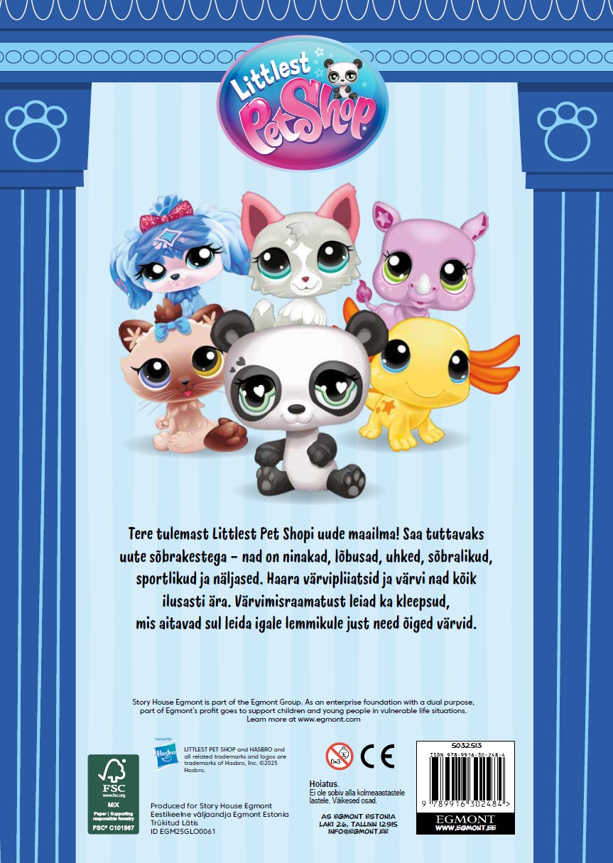 Tere tulemast Littlest Pet Shopi uude maailma! Saa tuttavaks uute sõbrakestega – nad on ninakad, lõbusad, uhked, sõbralikud, sportlikud ja näljased. Haara värvipliiatsid ja värvi nad kõik ilusasti ära. Värvimisraamatust leiad ka kleepsud, mis aitavad sul leida igale lemmikule just need õiged värvid.