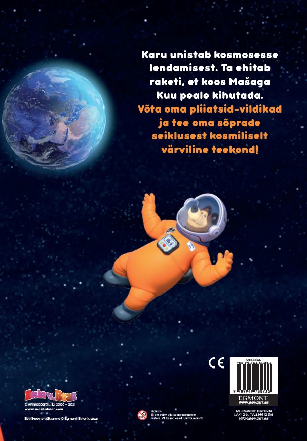 Karu unistab kosmosesse lendamisest. Ta ehitab raketi, et koos Mašaga Kuu peale kihutada. Võta oma pliiatsid-vildikad ja tee oma sõprade seiklustest kosmiliselt värviline teekond!