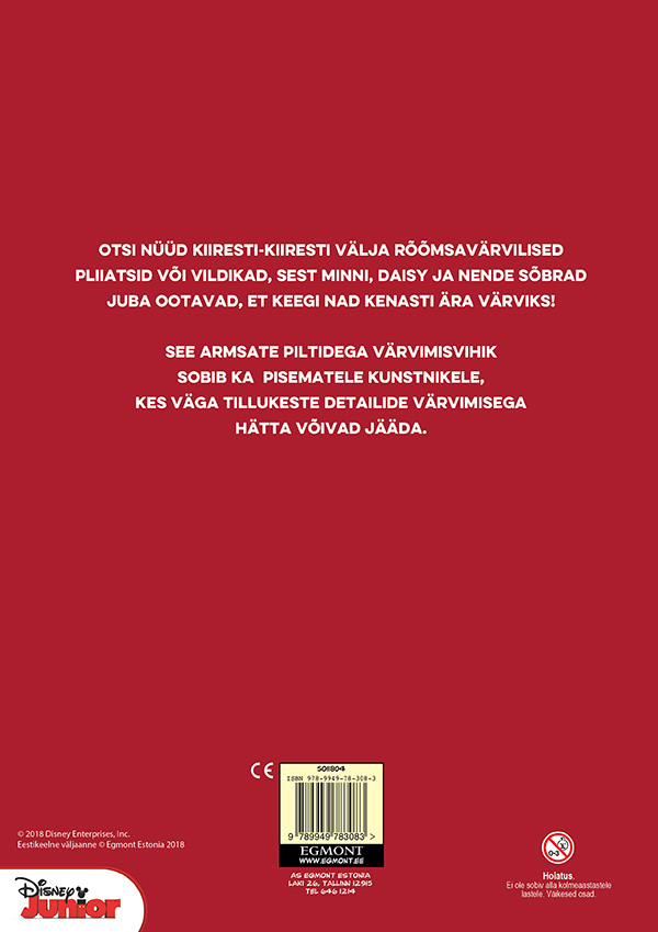 Otsi nüüd kiiresti-kiiresti välja rõõmsavärvilised pliiatsid ja vildikad, sest Minni, Daisy ja nende sõbrad juba ootavad, et keegi nad kenasti ära värviks! See armsate piltidega värvimisvihik sobib ka pisematele kunstnikele, kes väga tillukeste detailide värvimisega hätta võivad jääda. NB! TEGEMIST ON KOOPIATEGA, MILLE KAANED VÕIVAD OLLA PISUT KANNATADA SAANUD, SISU SELLEGIPOOLEST AEGUMATU!