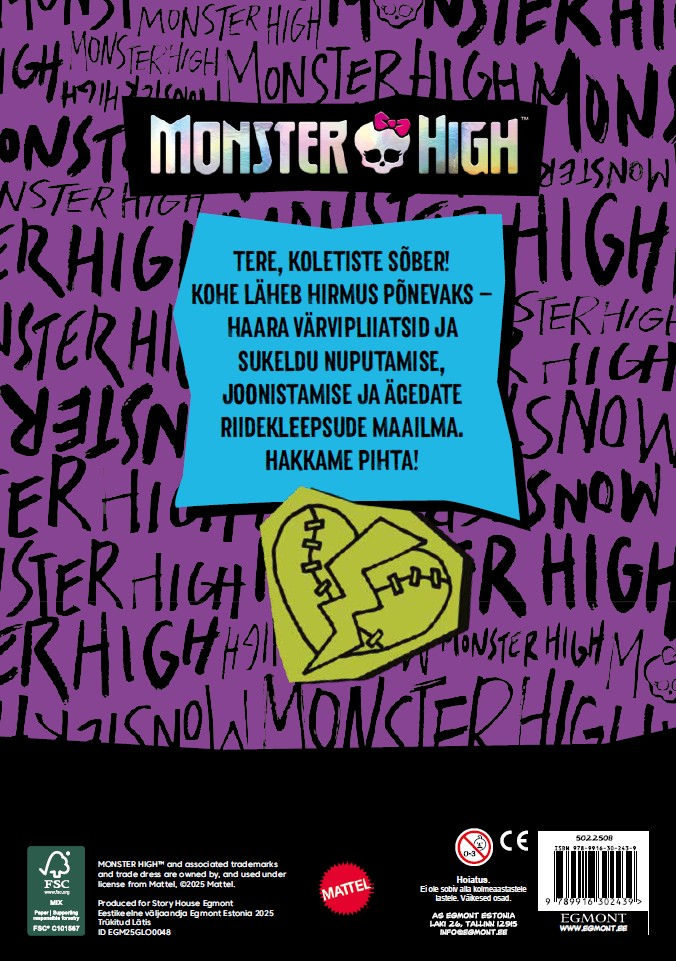 3.99€Tere, sõbrad! Clawdeen Wolf ja tema õudselt head sõbrannad Draculaura ja Frankie Stein kutsuvad sind uudistama koletiste kooli. Värvi jube ägedaid pilte ning naera ja seikle koos sõbrannadega kooli judinaid tekitavates koridorides ja klassiruumides.