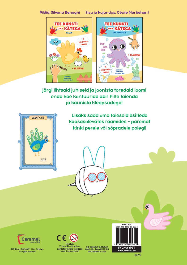 6.99€Imeline loometee algus pisikesele kunstnikule. Raamatus on armsad illustratsioonid ja lihtne test, mis julgustab lapsi kujutlusvõimet kasutama. Lisaks leiab raamatust “Näputrükk. Loomalapsed” viis vahvat tindipatja ja palju tegemist lastele, kes armastavad tembeldada, teha näpujälgi ja joonistada!